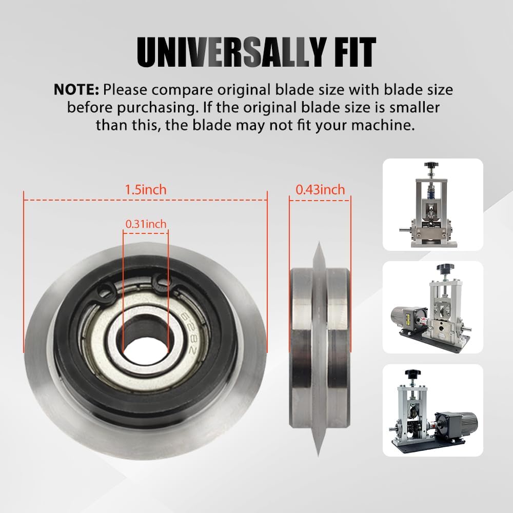 High-quality material structure: This wire stripper blade is made of high-quality material alloy, which is durable, sharp and wear-resistant, with a long service life, providing you with a reliable tool to meet your wire stripping needs.Versatile compatibility: Our wire stripper blades are designed to be compatible with various types of wire strippers. Suitable for various wire strippersEasy installation: Replacing the blade is also simple. When the blade becomes dull or worn, it can be replaced at any time without complicated operationsBlade size: inner diameter 0.31 inches (8 mm), outer diameter 1.54 inches (39 mm), thickness 0.43 inches (11 mm)